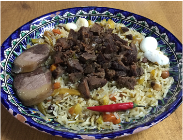Özbek pilavı: Bu lezzete şiirler yazılır, kilometreler kat edilir, bu lezzetin tadına doyulmaz. Her ne kadar Kazakların yemeği olmasa da Özbek pilavı, Orta Asya coğrafyasında oldukça çok tüketilen bir yemek. UNESCO’nun somut olmayan kültür mirası listesine eklenen bu lezzet, tam bir sanat eseri. Pirinç, soğan, havuç ve etten hazırlanan bu pilava yapıldığı yöreye göre farklılık gösteren 100’den fazla çeşit malzeme konuluyor. Ben Astana’da Rumi Astana Restoran’da tatma şansı bulmuştum ve abartmıyorum bu pilavın tadı hala damağımda.
